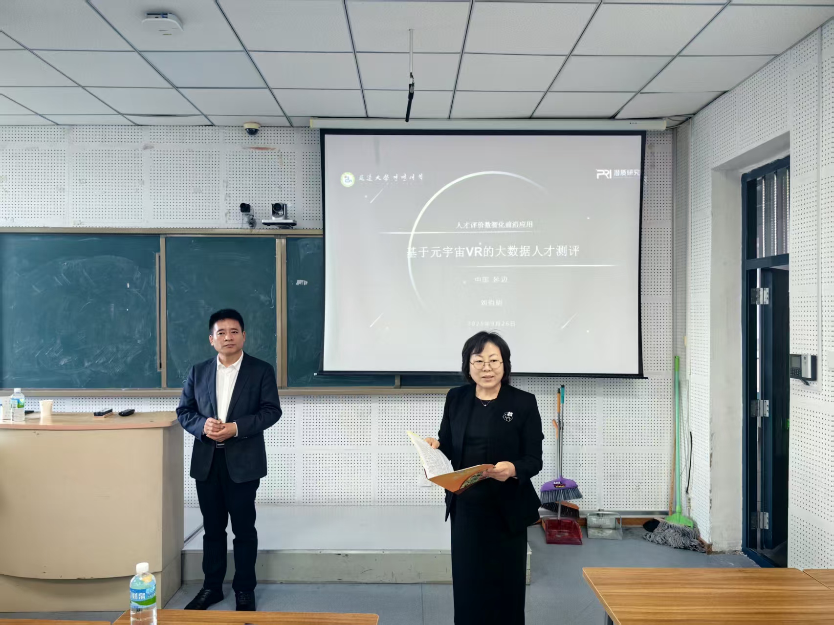 随后,刘教授系统梳理了从传统人才测评到元宇宙VR大数据测评的技术演进。他详细分析了传统测评“重认知轻行为、社会期许效应强、依赖主观判断”的三大弊端,并生动展示了基于元宇宙VR技术的人才测评如何通过沉浸式、多模态的数据采集,更为客观、精准地评估个体的潜质与行为特征。通过丰富的企业及高校应用实例,刘教授让同学们直观感受到数智化技术在教育与人才评价领域的巨大潜力。
