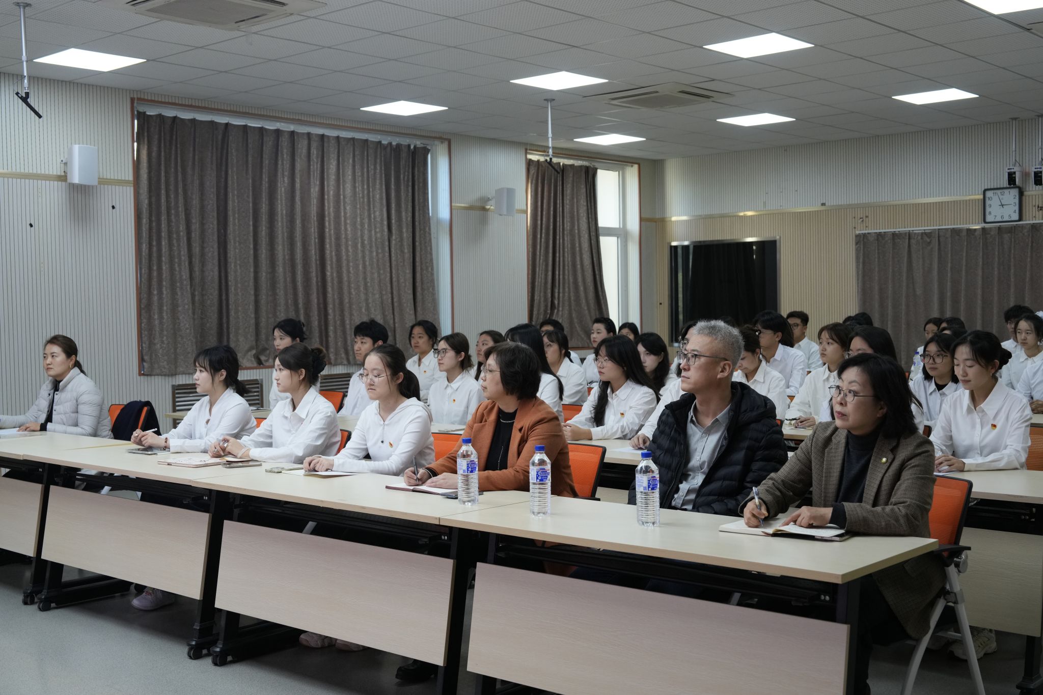 师生认真聆听思政课